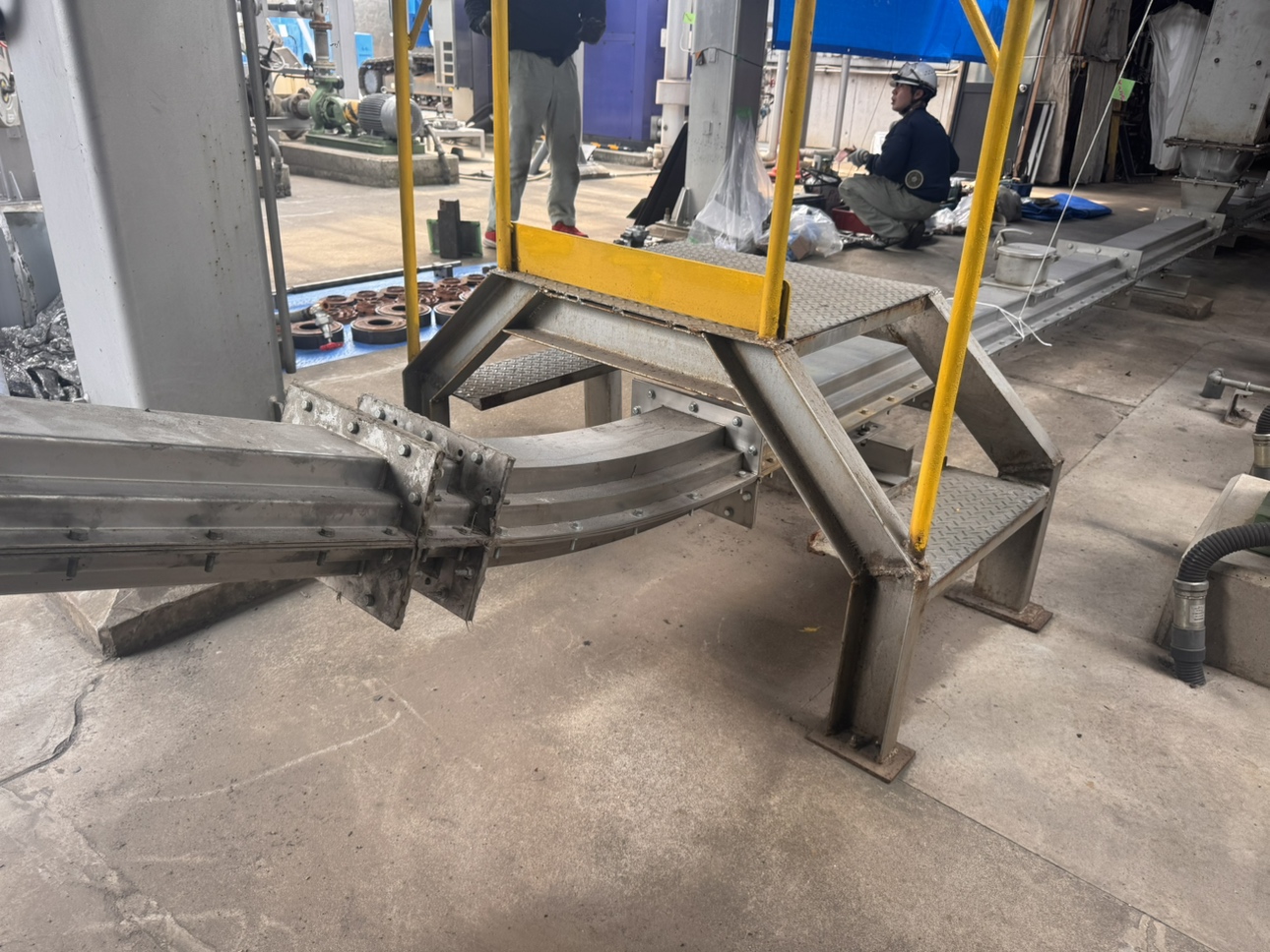 焼却炉等で使用されるフライトコンベアの開発と製造を行っています。既存製品はユニットごとの交換が必要でしたが、改良を加えて必要な箇所のみを開けてメンテナンス出来るように致しました。据付後もメンテナンスを行っています。